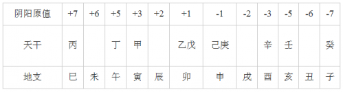 应用太极、阴阳观念及其衍生的阴阳均平原则,来处理八字命学的“调候原则”。其计算的干支阴阳气含原值如下表: