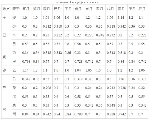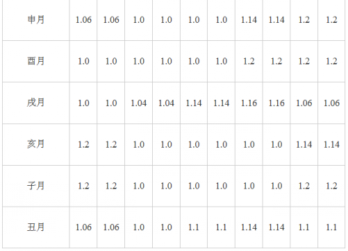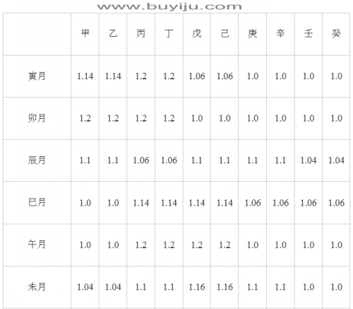 2。寅卯辰月生者,八字中的甲乙寅卯辰原值要乘以1.2。
