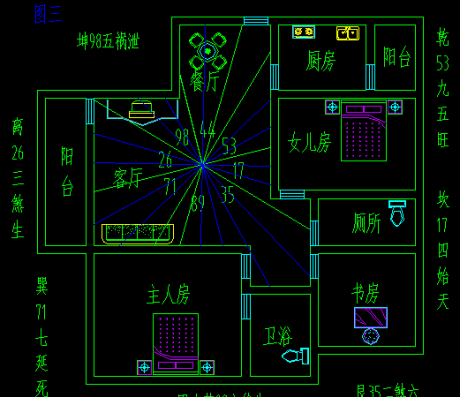 3、西南缺角损母亲,西北缺角损严父,东北缺角损小口。