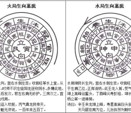 三合派用十二长生水法,用天盘。九星水法即是辅星水法,用地盘。