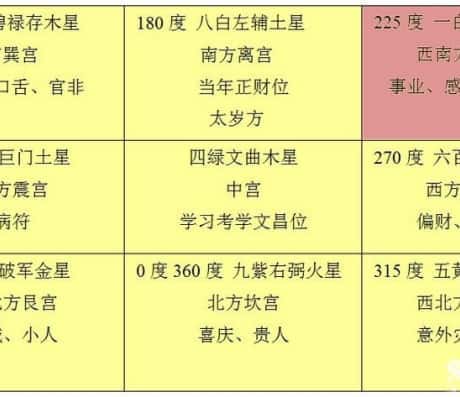 若定向时测得为午山子向,然后根据中宫立极好运盘。问清楚住此屋之人是何时搬迁至此,或何运大装修过,以此来确定中宫立极的元运,先假设是以七运立极,在定好坐向后,先起好运盘。(二)找出山、向在运盘宫位内相对应的运星