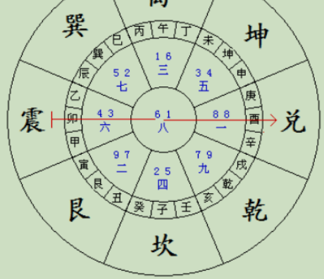 中宫是住宅的中心点。阴宅以棺材为中心点。立极是根据三元九运和坐向确定何运何星,并根据二十四山阴阳属性决定顺飞或逆飞,安排山星。
