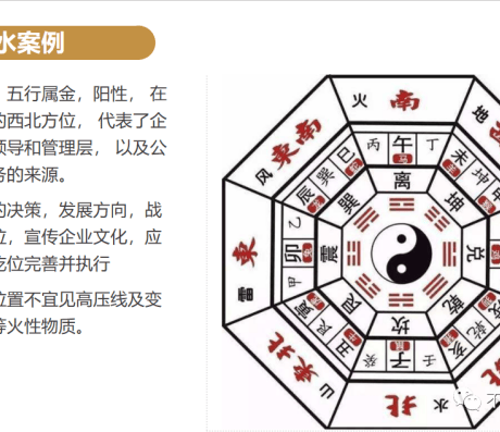 以上就是按照八卦五行平衡原理,将风水合理应用到企业中,对企业起到一些积极作用,避免一些事故,从而使企业更上一层楼。