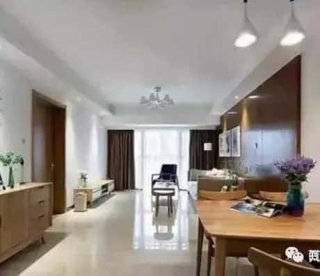 ▲像这种沙发不靠墙的户型,无法把沙发和电视墙调换位置,否则就得在餐客厅之间新作电视墙了,那样空间就不会通透了,所以一般这样户型大部分只能选择沙发居中,背后是餐厅,最起码保证客餐厅空间通透敞亮