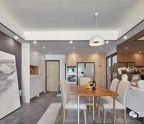 ▲刚需房改造,进门就是餐厅,同样颜值很高,进门不做任何遮挡,现代风的搭配非常清爽
