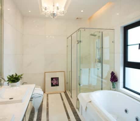 此外,卫生间里的水汽重,很容易发潮,因此墙壁、天花板等应选防水防霉的材料,特别是瓷砖缝隙,为避免发霉可刷上一层防水剂。