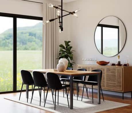 在餐厅里添加镜子也可以增加豪华感。您可以挑选您喜欢的镜子,将其放在可以反射桌子和其他物品的位置,这样就可以将美食和精心准备的美食翻倍展现。