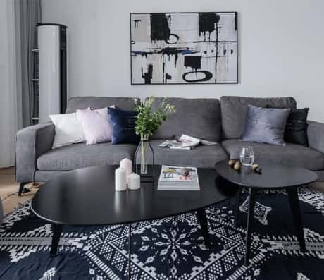 1、使用复古家具。我们在搭配家具时,可以选择明代、清代时期的家具,这两个时期的家具设计会与现代家具更接近,符合新中式客厅的搭配。颜色则可以选择黑色、深木色等等。另外我们在设计时,还要考虑家具、空间的点、线、面之间的流畅衔接,如果造型太乱的话,则会让整个空间显得杂乱。