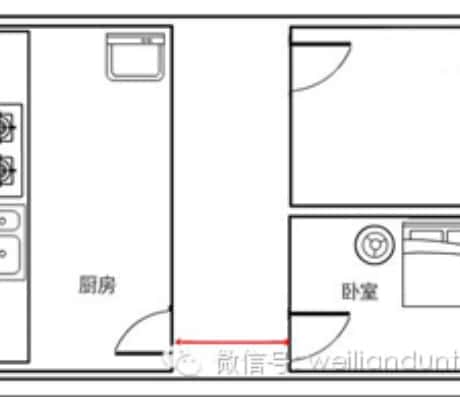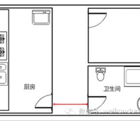 支招:如果两个大门距离较近,不好摆放植物和屏风,卫生间和厨房可悬挂挂帘,或者经常关闭厨房和卫生间的大门,减少气流的互相影响。