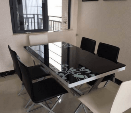 餐桌表面以易清算为本,大理石与玻璃等桌面较为坚挺、极冷,艺术感较强,但因其易迅速吸收人体饮食后产生的能量,不利于就餐者的坐谈交流,因此不宜一切用于正餐桌,但可以通过形状和质地进行调和,好比:圆形的大理石餐台或方形木桌等,有这些组合会带来良好的效应。