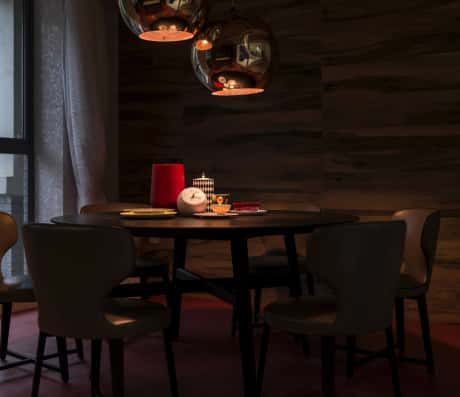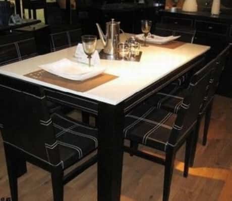 大理石与玻璃等材质制成的餐桌较为坚挺、极冷,固然艺术感较强,但因其易迅速吸收人体饮食后产生的能量,不利于就餐者的坐谈交流,因此不宜一切用于正餐桌。