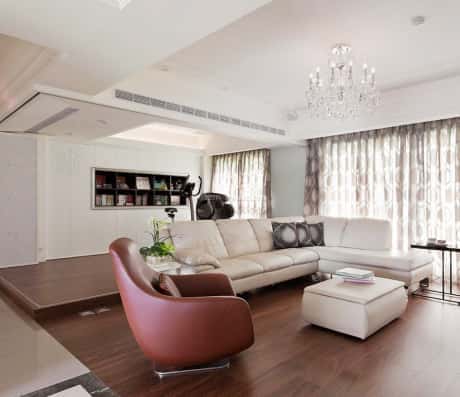 温馨提示:狭长型客厅也不是不能摆放L型沙发,如果非常喜欢L型沙发新房沙发什么时候买比较好呢?如何挑选沙发?,大家可以摆放活动式的沙发,让脚凳可以移动,避免空间动线受到限制。