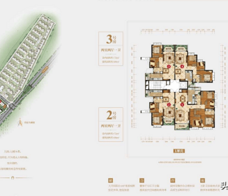 这个户型图另外还多了区域图(图最下边右边小图)。在这里可以看到相邻楼房的分布。