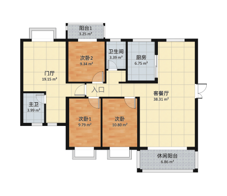2、户型图中粗黑的线条就是承重墙,承重墙不能轻易拆改,不然会有安全隐患。