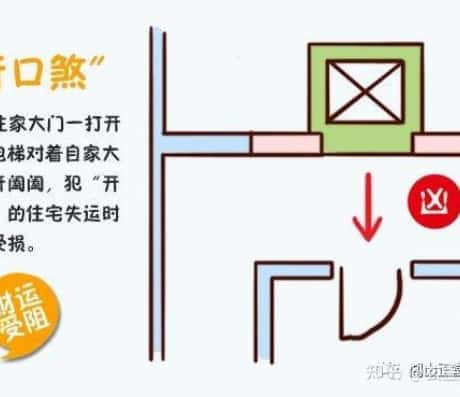 住宅大门面对电梯就犯了“开口煞”。会造成家运不济、守不住钱财、家中成员容易生病的反效果,同时易得血光之灾。