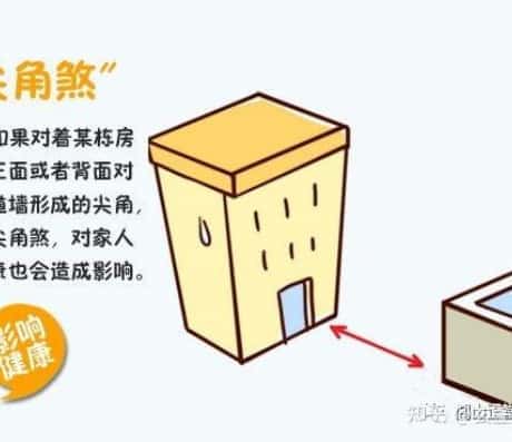 住宅的大门或窗口对着墙角,就犯了尖角煞。家庭成员的健康会受到极大影响,对于一些长期慢性顽疾,尤其是疼痛性和出血性的病症,容易引起反复发作,同时容易引起扭伤,刀伤之类的损伤。