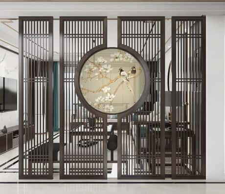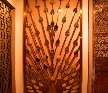古人很有智慧,用屏风来划分空间,所以在现代家具设计中也可以改良古风的屏风来装饰佛山禹晟不锈钢有限公司背景墙不锈钢屏风隔断装修效果图,特别是镂空屏风,营造一种客厅和餐厅的暧昧空间。