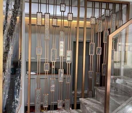 5、客厅与楼梯之间的不锈钢屏风隔断