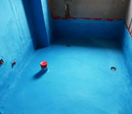 地面干燥且干净的情况下将防水涂料涂满。仔细观察是否与基层结合得牢固,没有气泡、裂纹、脱落等现象。