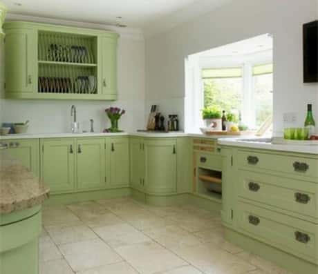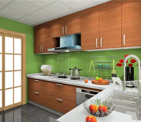 4、厨房宜采用欧式橱柜,欧式橱柜能整齐地收纳厨房杂物,使厨房容易保持清洁,橱柜以浅色或冷色系为佳,在烹饪时使人容易保持轻松愉快的心情。