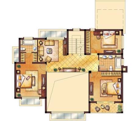 别墅客厅格局 中国人买房都希望房子户型方正,所以客厅格局最好是呈正方形或是长方形。一般意义上的户型方正就是指户型的进深与开间之比合理。进深与开间之比一般介于1:1。