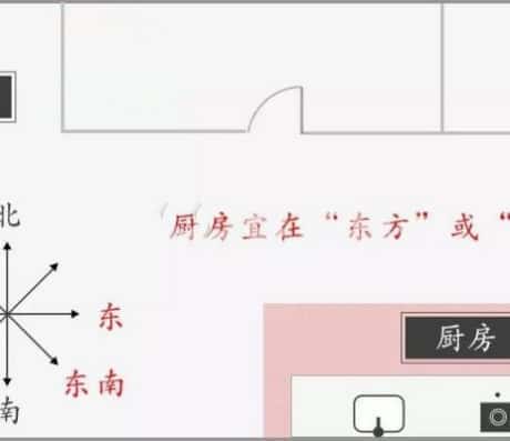 厨房不宜向南方,因为南面属火,厨房也属火。火上加火。则对居家不利,并且向南食物易腐化。所以厨房最好不要设在南方。厨房也不宜在家的中央,因为住宅的中心最忌受污。