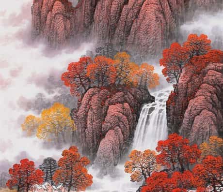此画作将传统国画山水精髓和中国红色山水画历史特性相结合,构图巧妙,虚实相生,远近呼应,疏密有致进门玄关挂什么风水字画招旺财运?,外张气魄雄伟恢弘,内敛精神禅意悠远,境界超迈,气象宏远。画作笔法精湛,粗细兼工,对比强烈,色彩鲜明,主题群山绵延无尽,大面积朱砂点染,象征家人的鸿运当头,朱砂着火,满山红叶与秋之金火辉映山间,碧树描金,华彩辉煌风水玄关画山水,枝繁叶茂,坐地生财、财源广进寓意其火,可寓国运兴旺昌隆,福泽千秋万代, 又可意家道运势,聚福纳财,百代兴旺。绝对是居家好玄关风水字画的首选。