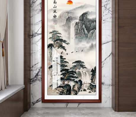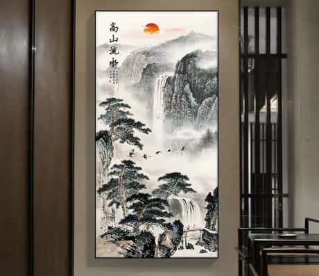 山延绵,即龙脉延绵不绝,或高或低,或耸或入,开腾飞跃,展现的是龙的气势滂沱。山厚实,展示的是龙脉的雄厚坚实;不管是做生意或者是事业上都会遇到靠山木是表示招财树的意思风水玄关画山水,招财挡灾。古树参天,葱葱绿绿,表朝气勃勃,旺盛之气;具有招财进宝辟邪挡灾云是表示祥云的意思,天赐祥云。云海茫茫,烟霞云霁,表润泽肥沃,紫气东来;祥云天降瑞气千条吉祥伴随山水画是我国传统的吉祥画,常青、背靠大山、水(财)长流、平安之意。进门玄关风水挂画三、吴大恺四尺竖幅山水画作品《此生山中住》作品来源:易从网这是一幅水墨山水画作,远方是茫茫群山,山上郁郁葱葱,一道瀑布飞流直下,河水顺流而下,一条小道延伸到山坡之上,山坡上房屋林林总总,看来是人丁兴旺。一派山环水绕的感觉。山水画向来是中国画的经典题材,山为靠山,水为财源,江河长流,财源不这幅画挂在家中或是公司办公室都很合适,不仅能起到装饰作用,又能调节风水。作为礼品送给开公司办企业的朋友也相当不错。画家简介:吴大恺,原名吴虹堂,四川人,1971年生,毕业于四川民族学院美术系,后于文化部中国画研究院高研班(现中国国家画院)学习。现为中国美术学会会员,中国青年美术家协会常务理事,中国山水画院专业画家,二级美术师,中国道教全真教龙门派第二十三代传人,道号悟泉道人。