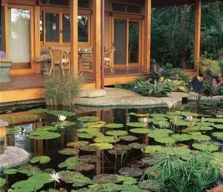 • 流动的水最吉利。如果做得到,最好将水流导向木栈平台的底下,让活泼的气能够进入屋内。规划时请留心流速、形状与流向。