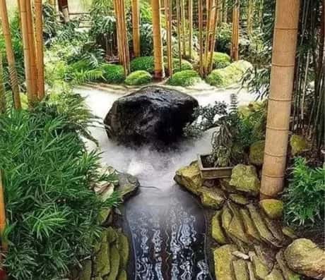 有助于活跃空间氛围,活跃家居气流,振奋人心,避免财气停滞。仿照流水别墅,将流水引入庭院,将溪流贯穿其中,上架石桥、散步小径、贴水石阶等,一副原始、古朴、自然的景致就已然跃然纸上。