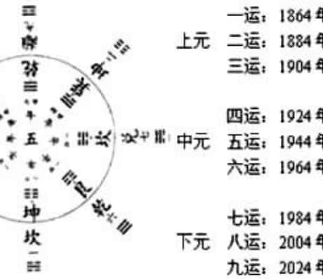 由黄帝始,使用六十甲子干支来推演历法,直至今天,已有七十八个花甲。一元分三运,一运为二十年。运又分为:一白运、二黑运、三碧运、四绿运、五黄运、六白运、七赤运、八白运及九紫运,一直循环不息。