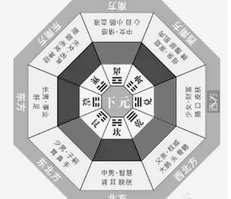 下元当运的四个方位分别是:南方离卦、西方兑卦、西北方乾卦、东北方艮卦,这四个方位纳的是旺气,为吉。