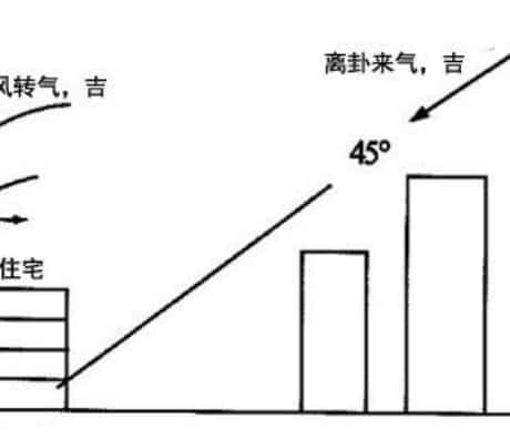 还需要注意的是,如果纳气口外面有高大建筑物、构筑物、山体等,为峤星。峤星在旺方,宜远,高低渐近,峤星在衰方(零神方),宜近,迴风转气。比如八运北方坎卦为失运的方向,有大窗户本主凶,但是窗户外近处有高楼,可以将离卦方向的旺气,迴风转气,转凶为吉。