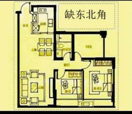 c、缺艮的家居住宅:下一个是缺艮的住宅缺角煞的房子又是什么样的?如何补救?,艮宅表示东北角艮为少男这种住宅这种住宅家中的年幼的男孩常常多病多灾。