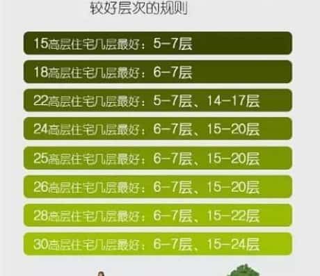 说到楼层风水,这里一般特指的高层楼房,至少在10层、15层、18层以上。然后楼层大致分为三层,上三分之一,中三分之一,下三分之一。在挑选楼层是应该选哪一层呢?