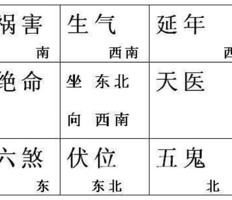 那么住宅的四个吉位位于: 生气位:东南方(属木);延年位:南方(属火)