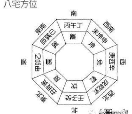 八宅即地理学贯用的后天八卦方位,一卦统三山八宅风水八运图,丙午丁为离卦正南。未坤申为坤卦西南。辰巽巳为巽卦东南。庚酉辛为兑卦正西。甲卯乙为震卦正东。戌干亥为干卦西北。丑艮寅为艮卦东北。壬子癸为坎卦正北。(图一)