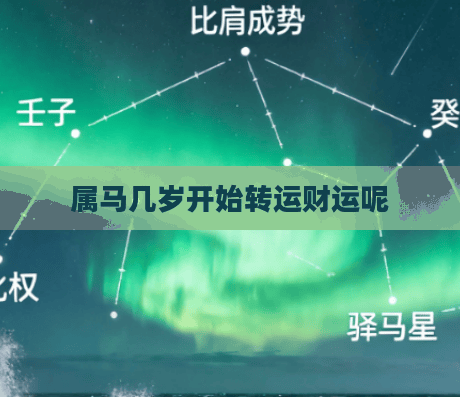 属马的人通常被认为是充满活力、勇敢和乐观的。在财运方面,他们可能会经历一些起伏。那么,属马几岁开始转运财运呢?这是许多属马人关心的问题。事实上,属马人的财运转运年龄并没有一个固定的答案,因为每个人的运势都受到多种因素的影响,如出生年份、出生月份、出生日期、出生时辰等。但是,一般来说,属马人在 31 岁、43 岁、55 岁等年龄阶段可能会迎来财运的转机。
