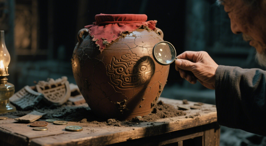 施工队进场后,一切按部就班地进行着。一天午后,地基挖掘工作正紧张进行,突然,一名工人的铁锹碰到了硬物,发出沉闷的声响。大家围拢过来,小心翼翼地清理周围的泥土,一个古朴的陶罐渐渐显露出来。陶罐周身布满青苔,罐体绘着奇异的纹路,像是某种神秘的符号。消息很快传到了家族长辈苏老爷子耳中,他急忙赶来,看着陶罐,眼中满是疑惑与好奇。