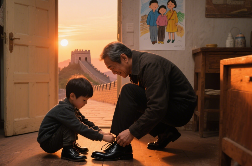 (新门落成那夜,监控拍到儿子跪擦门槛。月光下,父子影子在门板上叠成「孝」字,宛若十五年前父亲教他写字的模样。)